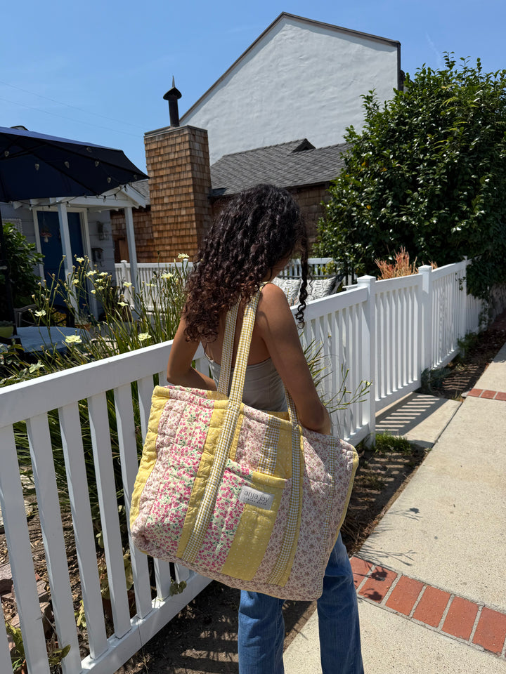 Carry all your beach day must-haves in this boho patchwork beach bag! Extra large and super cute, it’s perfect for hauling your essentials to school, work, or a sunny day out. With a zippered inside pocket and an outer pocket for easy access, this quilted summer tote keeps everything organized. Handmade from soft quilted cotton in a colorful patchwork, it’s the ultimate mix of style and function. Grab this patchwork beach tote and head out in style!