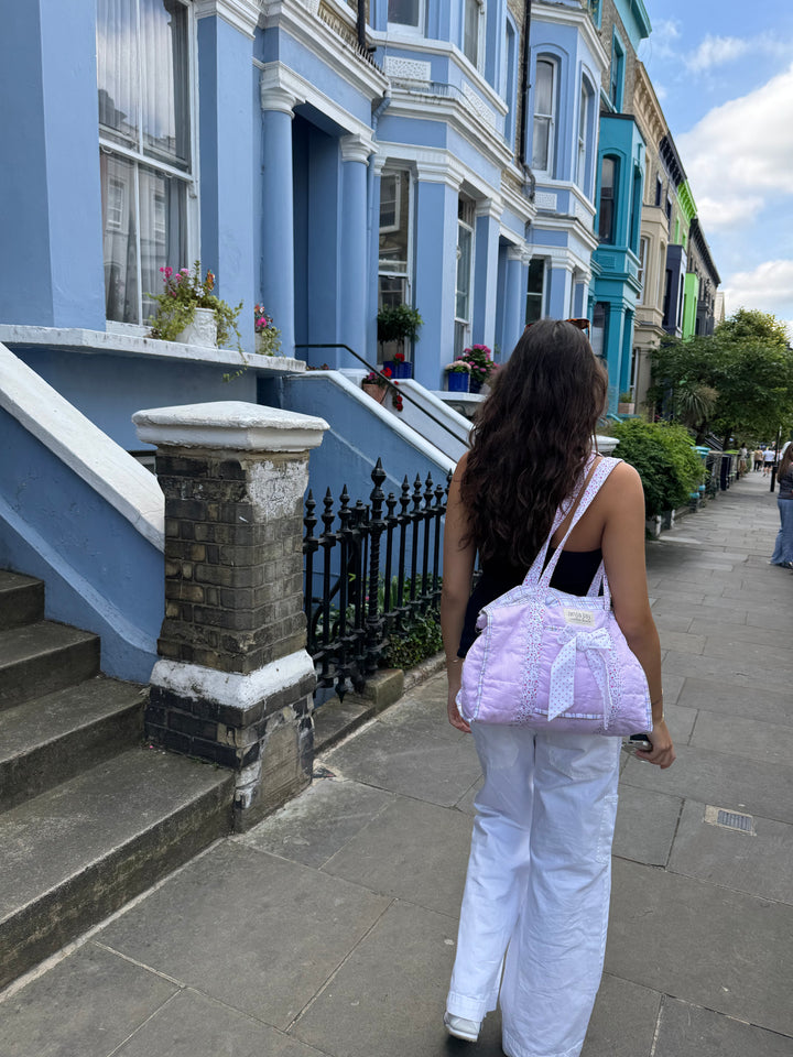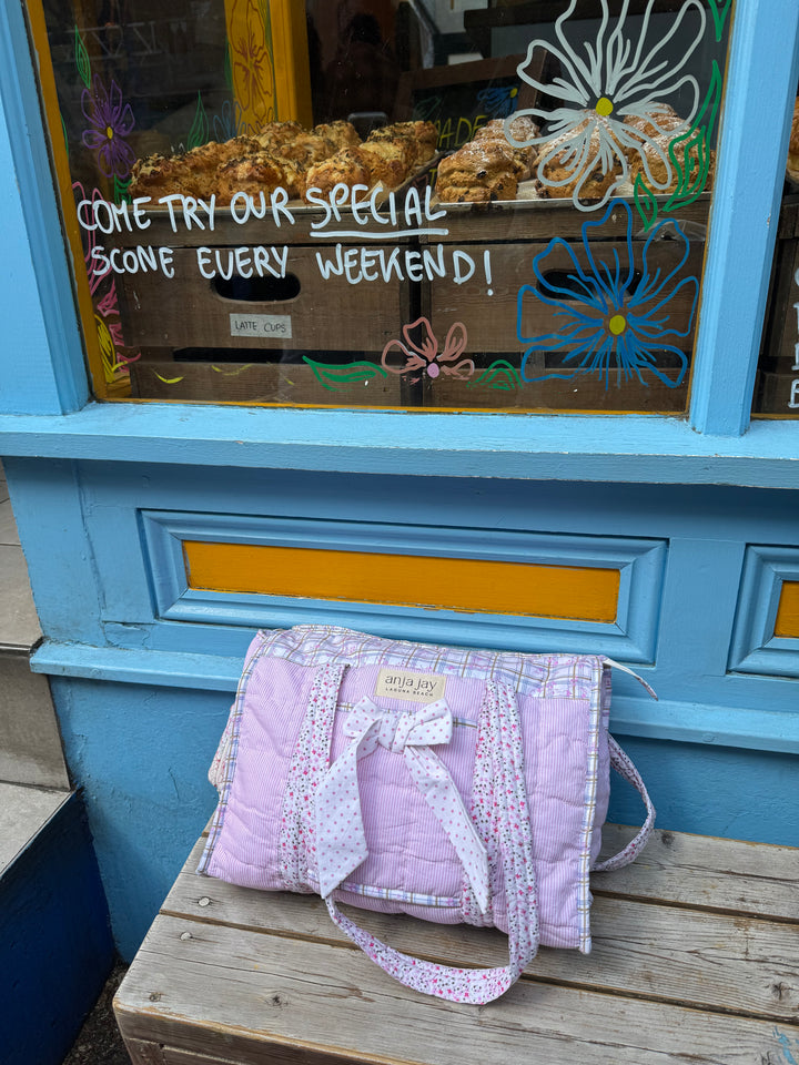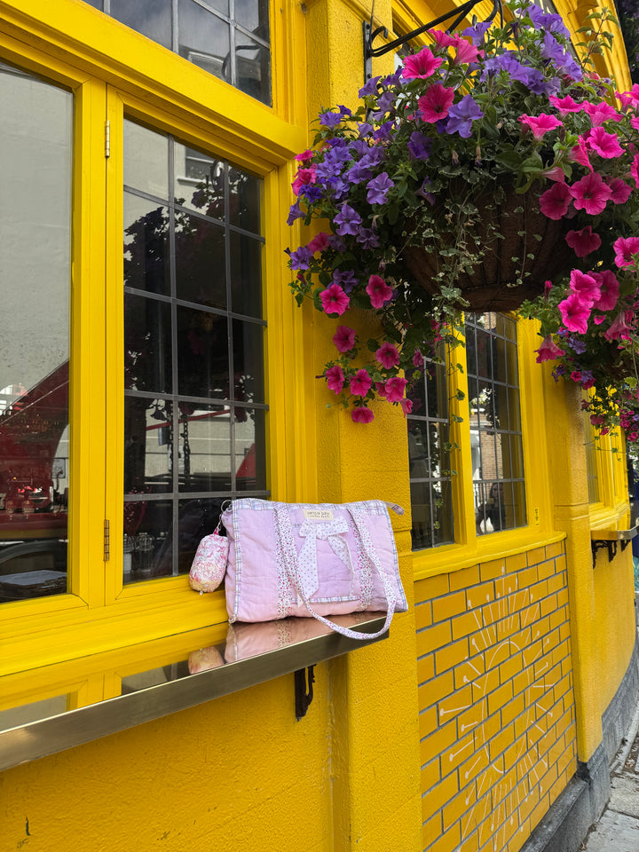 Every bag is handcrafted from a patchwork quilt in this color combination. Due to the manual process the grouping of patches may differ from bag to bag making each piece unique.